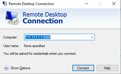 Enter your IP address in the Computer field, followed by a colon, then your custom port number, like this example: