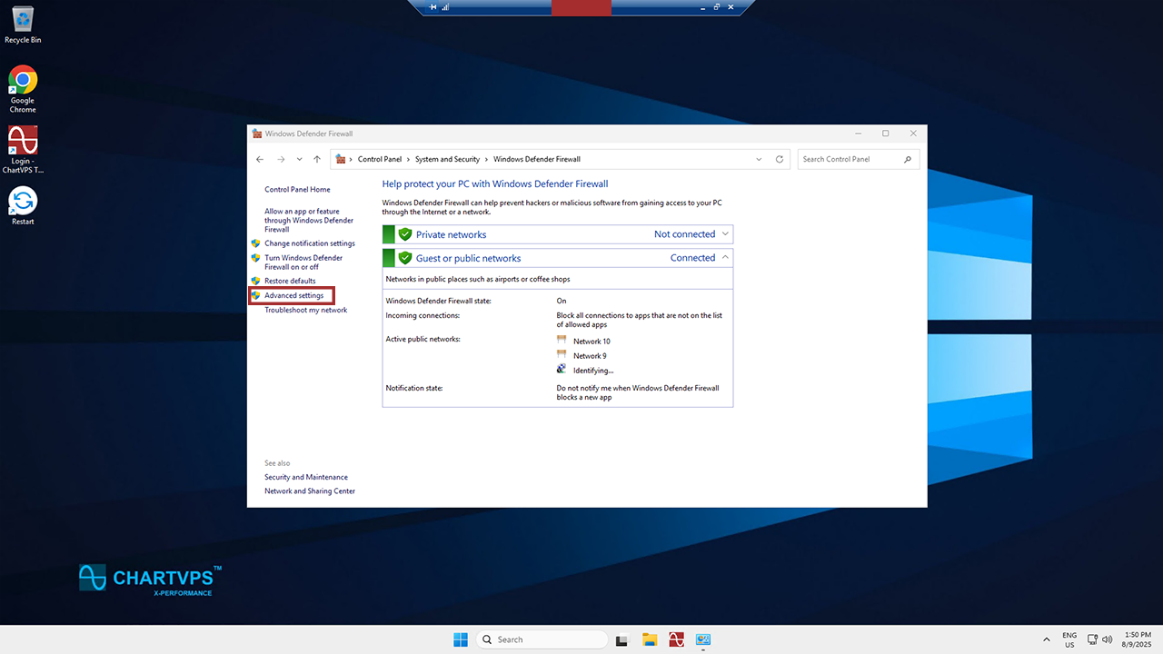 Now you’re in the Advanced Settings. From there, look left again and select Inbound Rules.