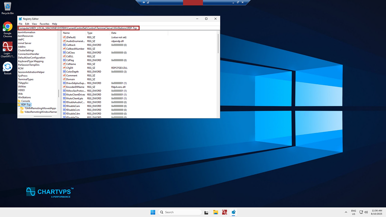 HKEY_LOCAL_MACHINE\System\CurrentControlSet\Control\Terminal Server\WinStations\RDP-Tcp