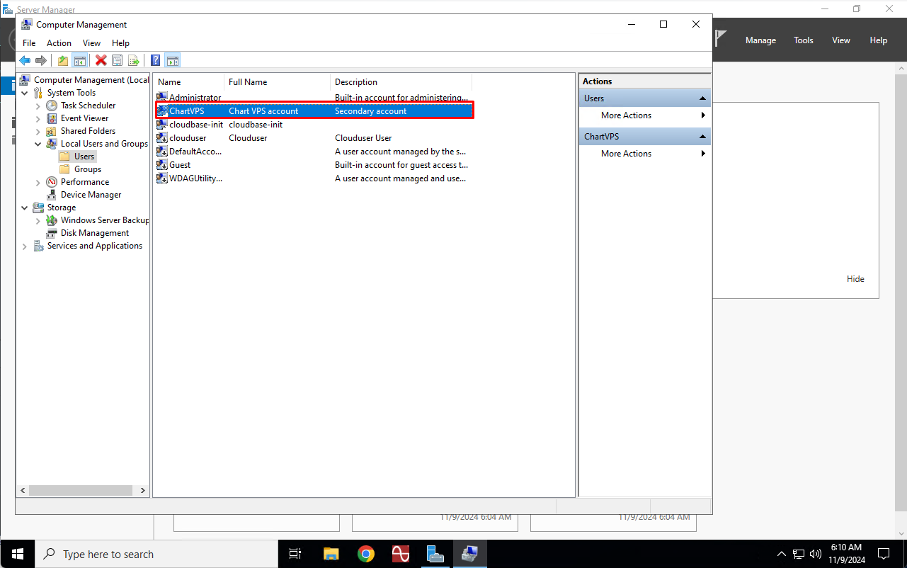 Uncheck the User must change password at next logon checkbox if you want to set a specific password without requiring the user to change it on the first login. This is more work, as first log in password change is not supported via remote desktop and would have to be done via ChartVPS Portal’s server web console.
