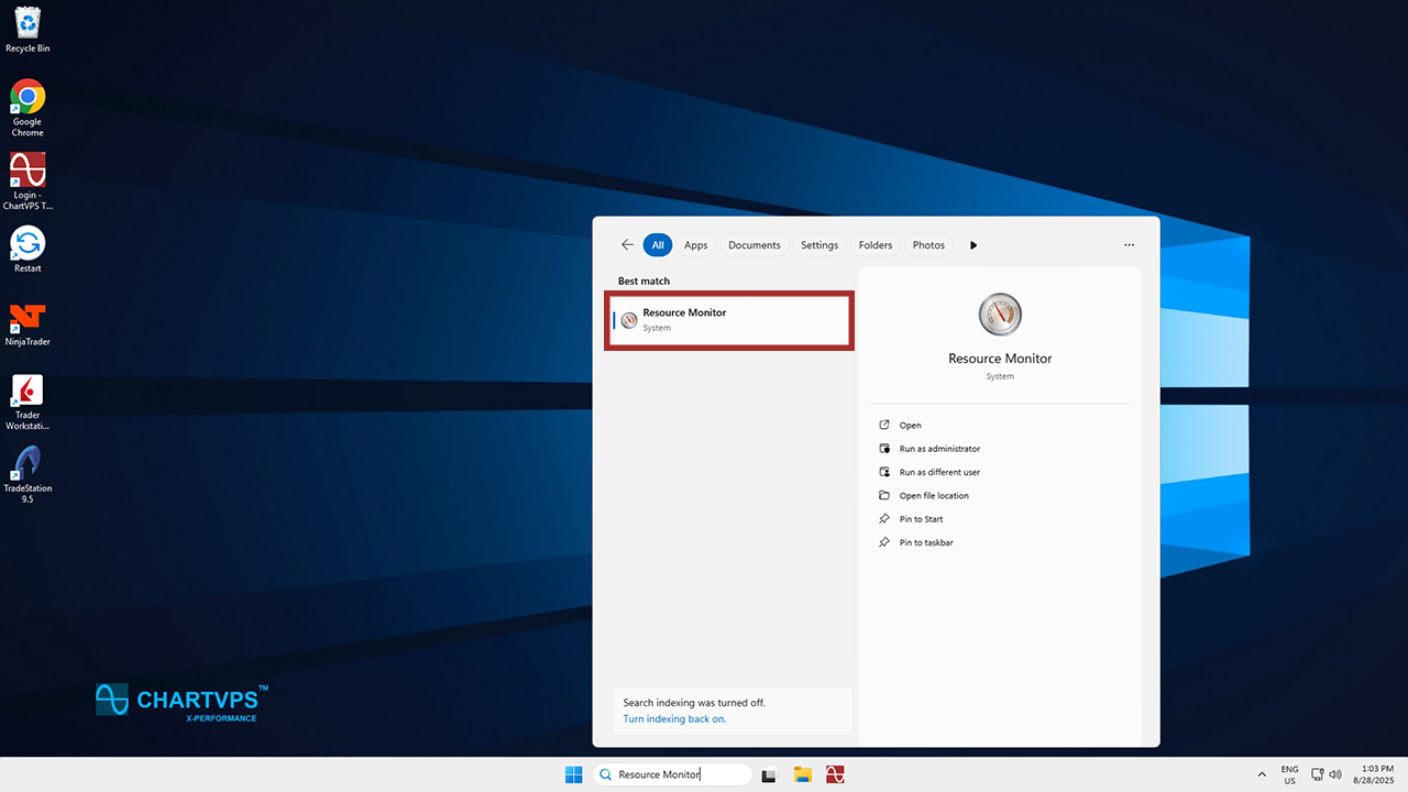 Another step, another search! This time, look for the Resource Monitor app and open it.