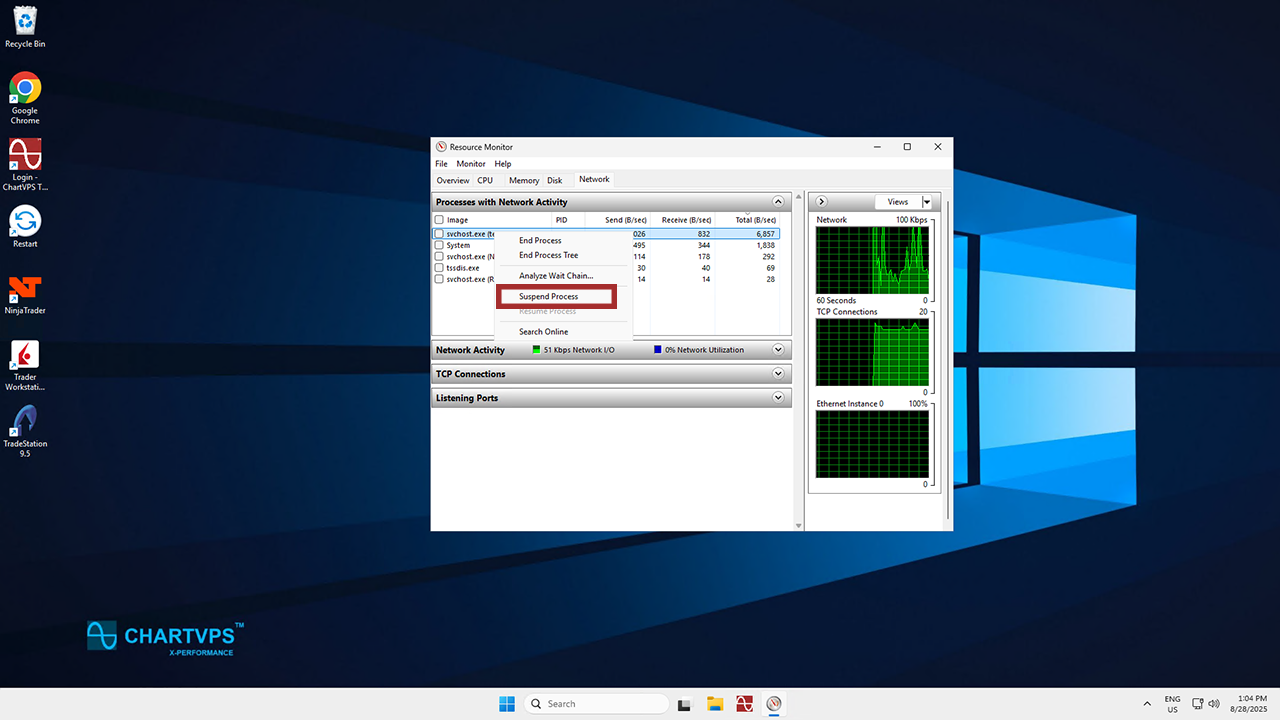 If you do notice any unknown processes, suspend them. To do that, simply right-click on the process and choose Suspend Process.