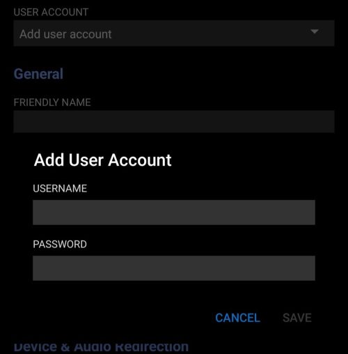 Now, tap the User Account field and select Add user account from the options. You’ll see a field that allows you to enter a username and password. All you’ve got to do is input the username and password you also found in the Portal in Step 1, and hit Save.