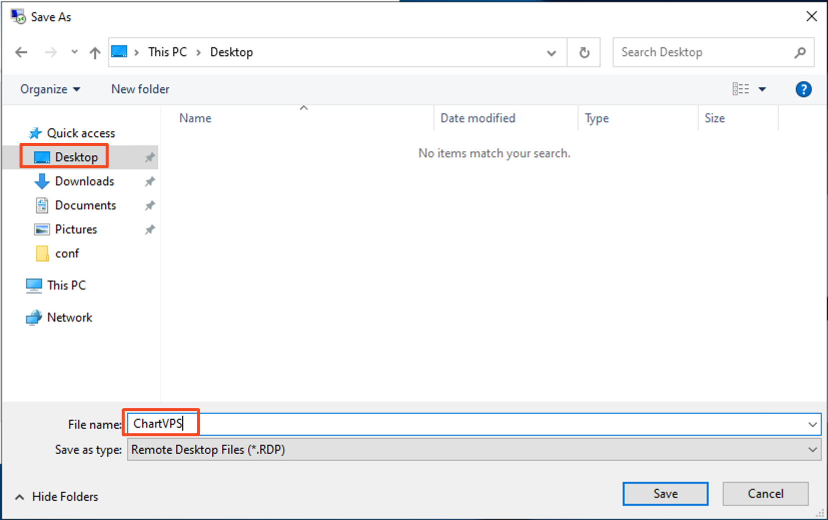 For the location choose Desktop on the left-hand panel (if you prefer to have the shortcut in a different location feel free to do so). As for the name one option you can put is “ChartVPS” but you can use any name that will be a useful label for your Remote Desktop Connection Shortcut.