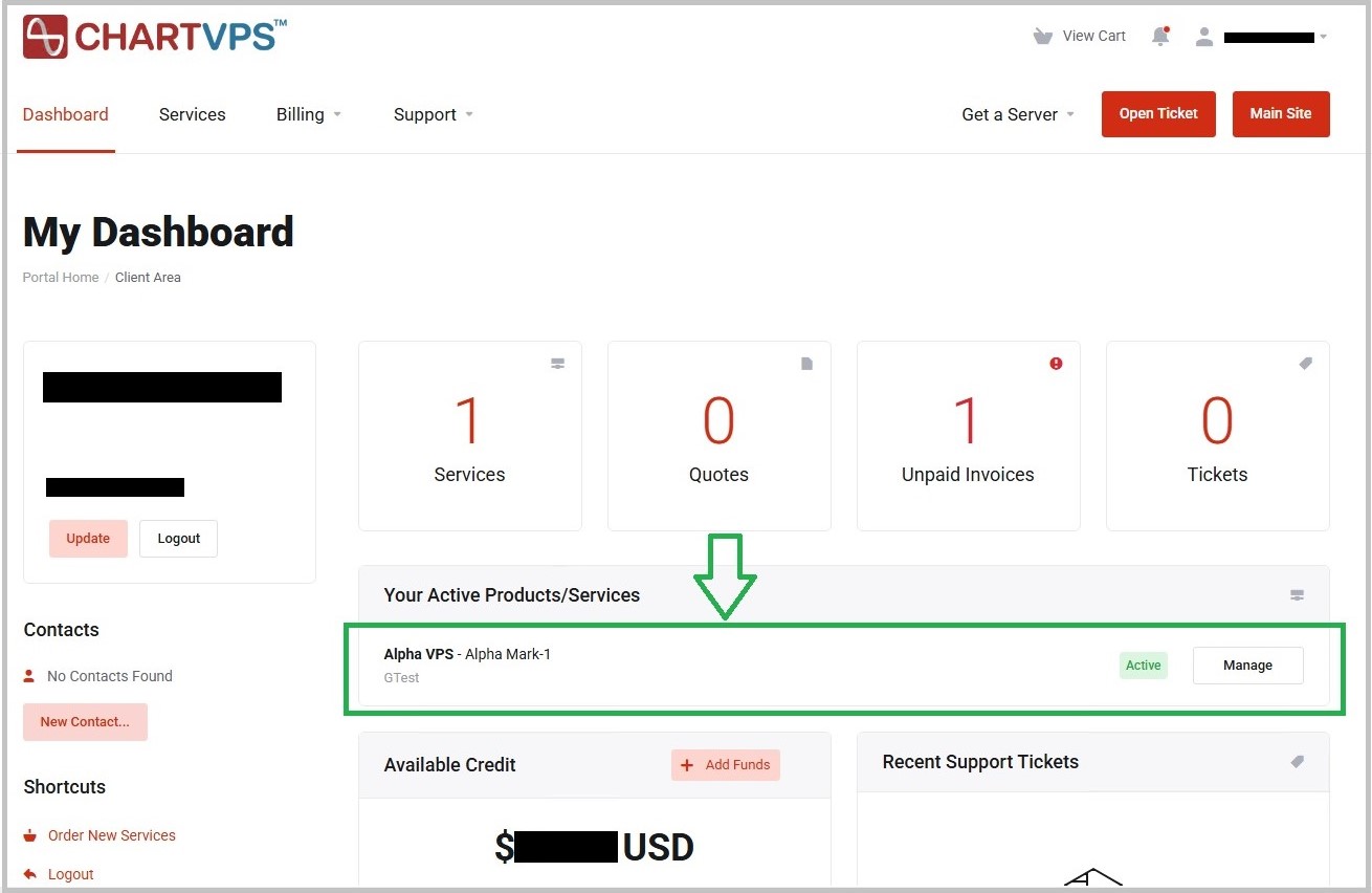 - Head over to your ChartVPS account via this link, http://portal.chartvps.com/ and login to the client Portal.