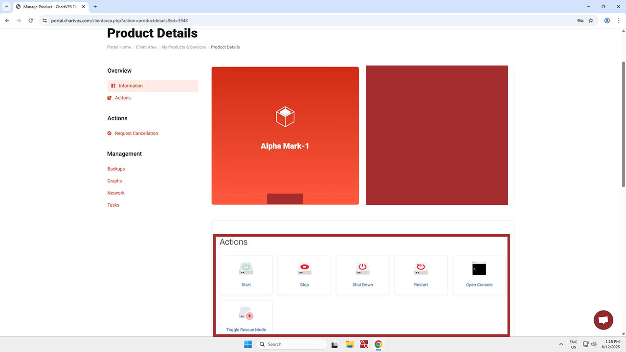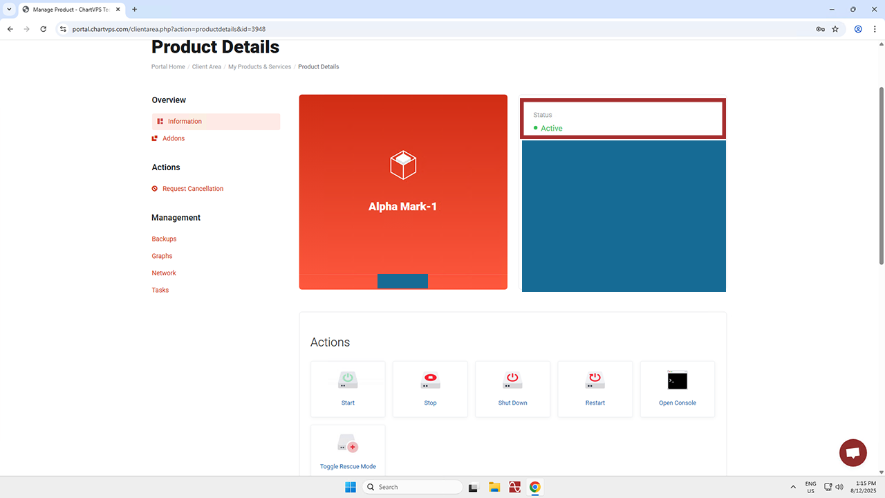 Open Console – When it comes to a VPS, the console refers to a feature that provides direct access to the server’s operating system through a web interface. It’s like a remote terminal or command line interface that lets you interact with the VPS as if you were physically in front of it. The console is especially useful in situations where you can’t access the VPS through traditional remote methods (like Remote Desktop or Secure Shell) because of network configuration issues or other problems.