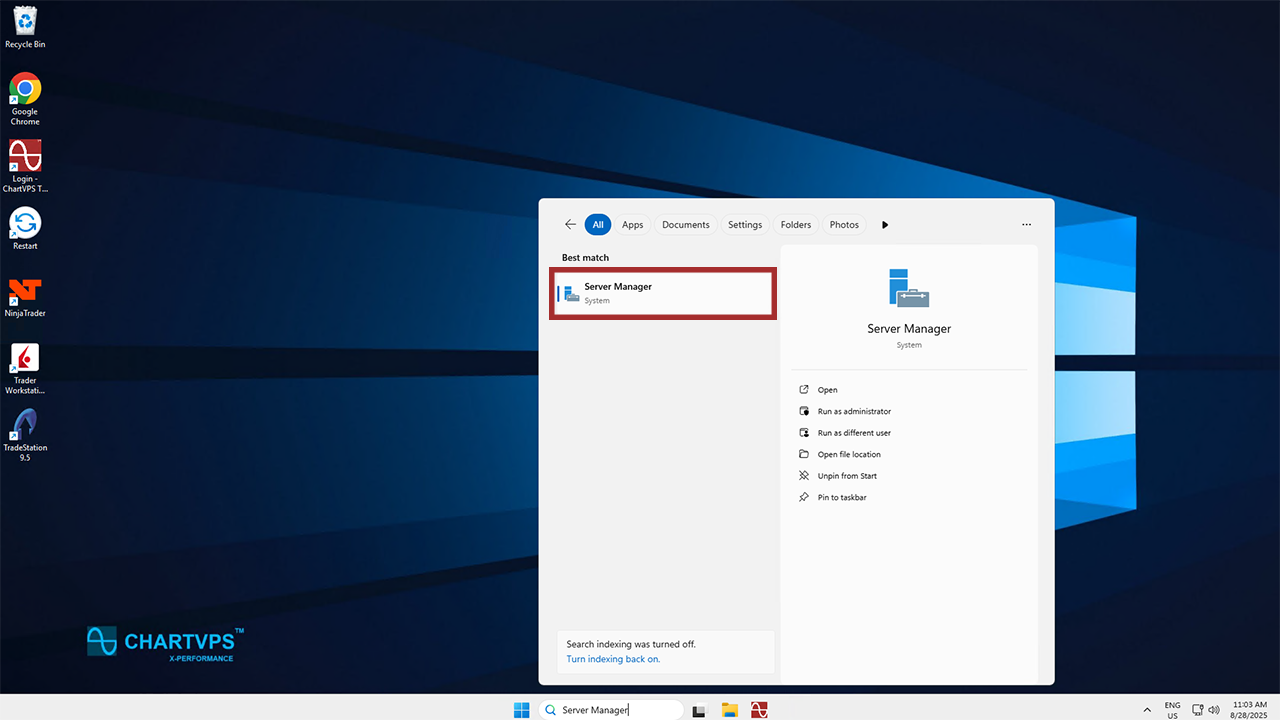 The first thing you should do is check the License Server Configuration. Go ahead and open the Server Manager. The easiest way to do this is to hit Windows + S, then type in “Server Manager.”