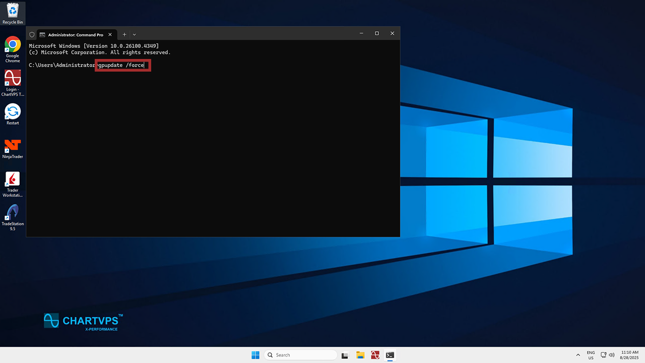 Copy and paste “gpupdate /force” in there and hit Enter to apply the new policy settings.