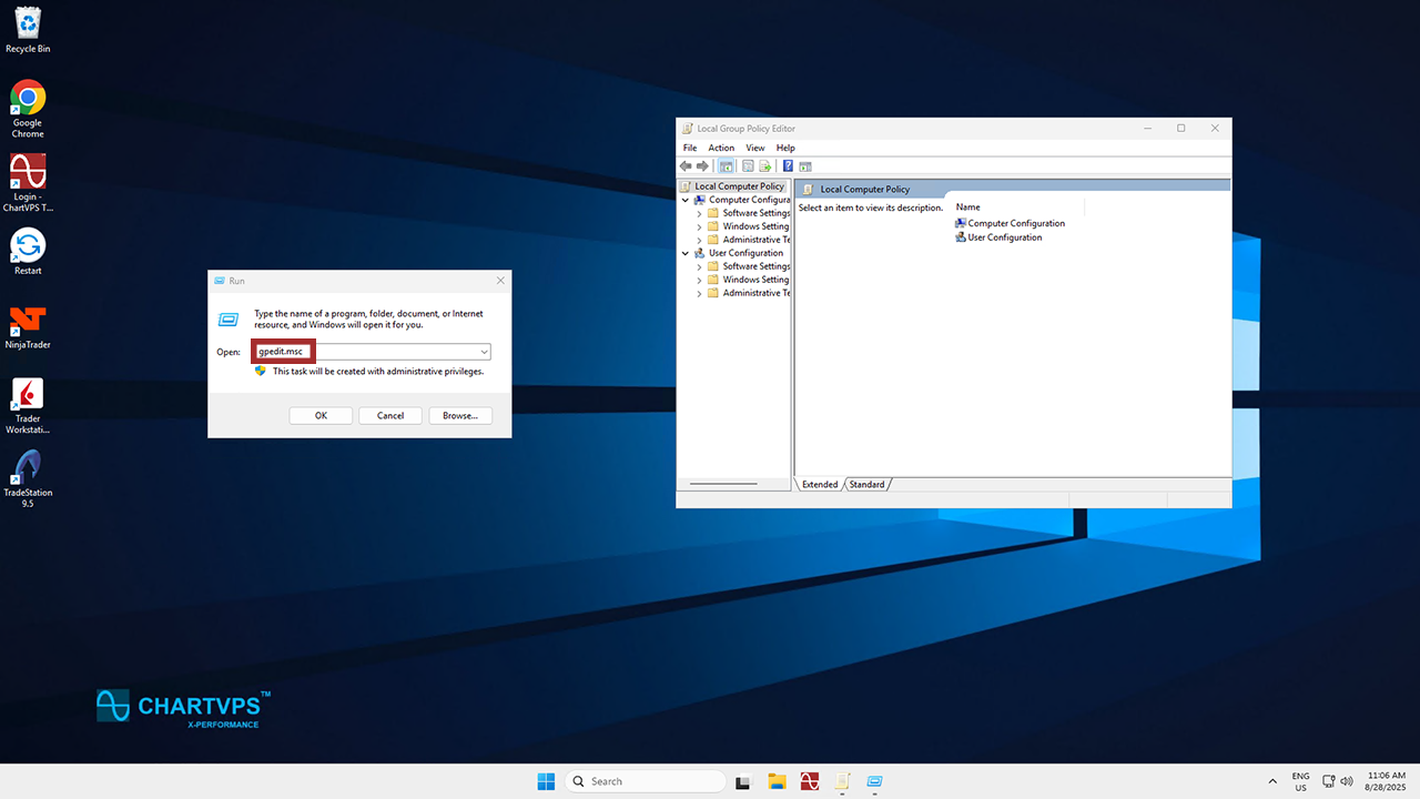 Now then, you’ll have to open up the Group Policy Management Console. The simplest and quickest way to do this is to press Windows + R, then type in “gpedit.msc” and press Enter.