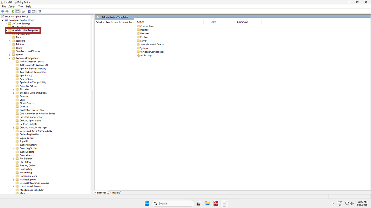From there, navigate to Administrative Templates.