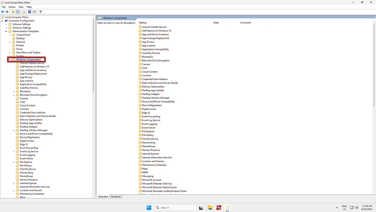 Then, head to Windows Components.