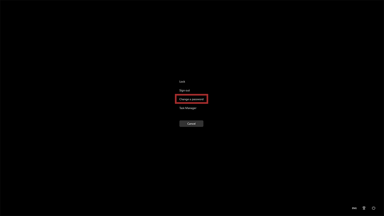 All you’ve got to do is press Ctrl+Alt+End, then click on Change a password.