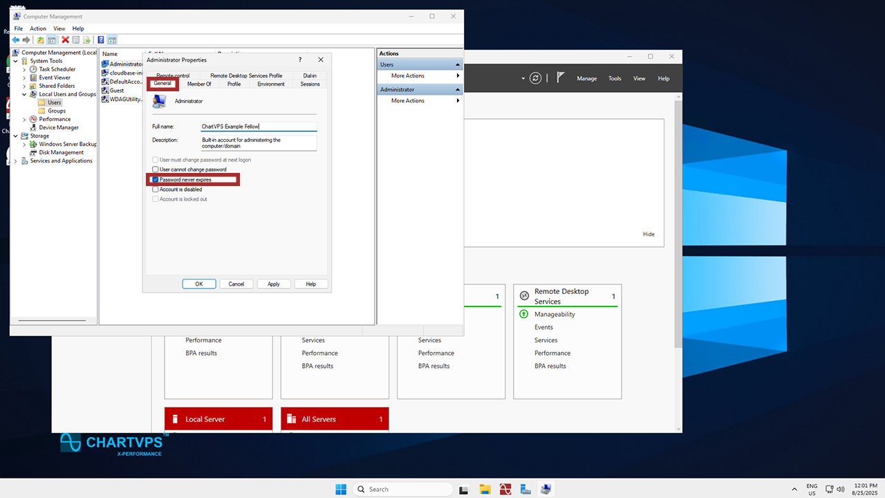 If you’re using a ChartVPS Virtual Private Server (VPS), it’s running Windows Server 2025 by default. If you happen to encounter a password expiry prompt on the server, here’s a step-by-step guide to changing the password!