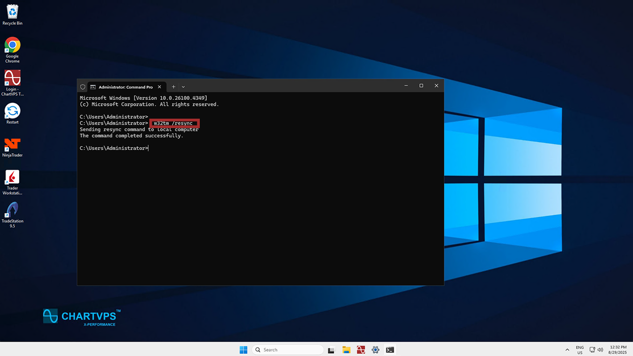 - This’ll attempt to immediately sync the time with the default time source. If it’s successful, you’ll see a message like “The command completed successfully.”